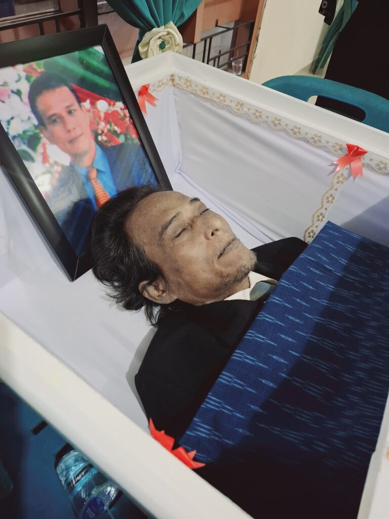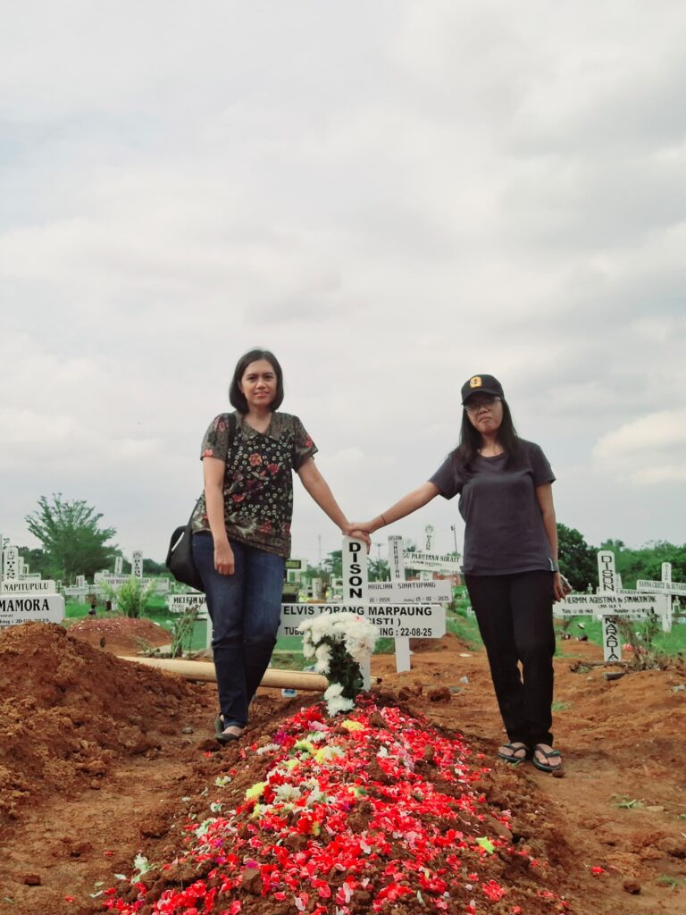 Tetap ada senyum di wajahmu. Kamu sudah tenang sambil menunggu kita berkumpul kembali. Aku yang hanya bisa tertunduk dan diam menangis saat menghadap jasadmu.